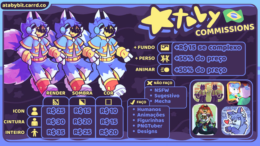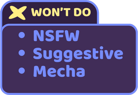 - A data de entrega e o pagamento é combinada no momento do pedido- O prazo máximo de entrega é de 1 semana- 50% do pagamento é feito após aprovação do sketch e os outros 50% após a entrega do desenho- O preço pode aumentar caso o pedido for muito complexo, mas é sempre negociável- Pagamento pode ser feito por PIX ou PayPal